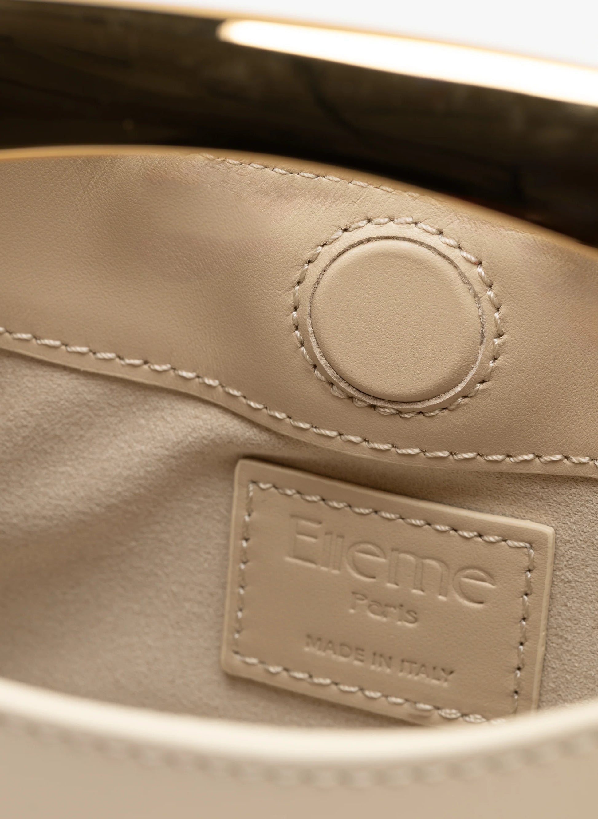 The mini version of the bestselling Boomerang bag features a metal handle, elegant east-west shape, removable adjustable shoulder strap, magnetic closure, 18k gold-plated hardware and protective bottom studs.